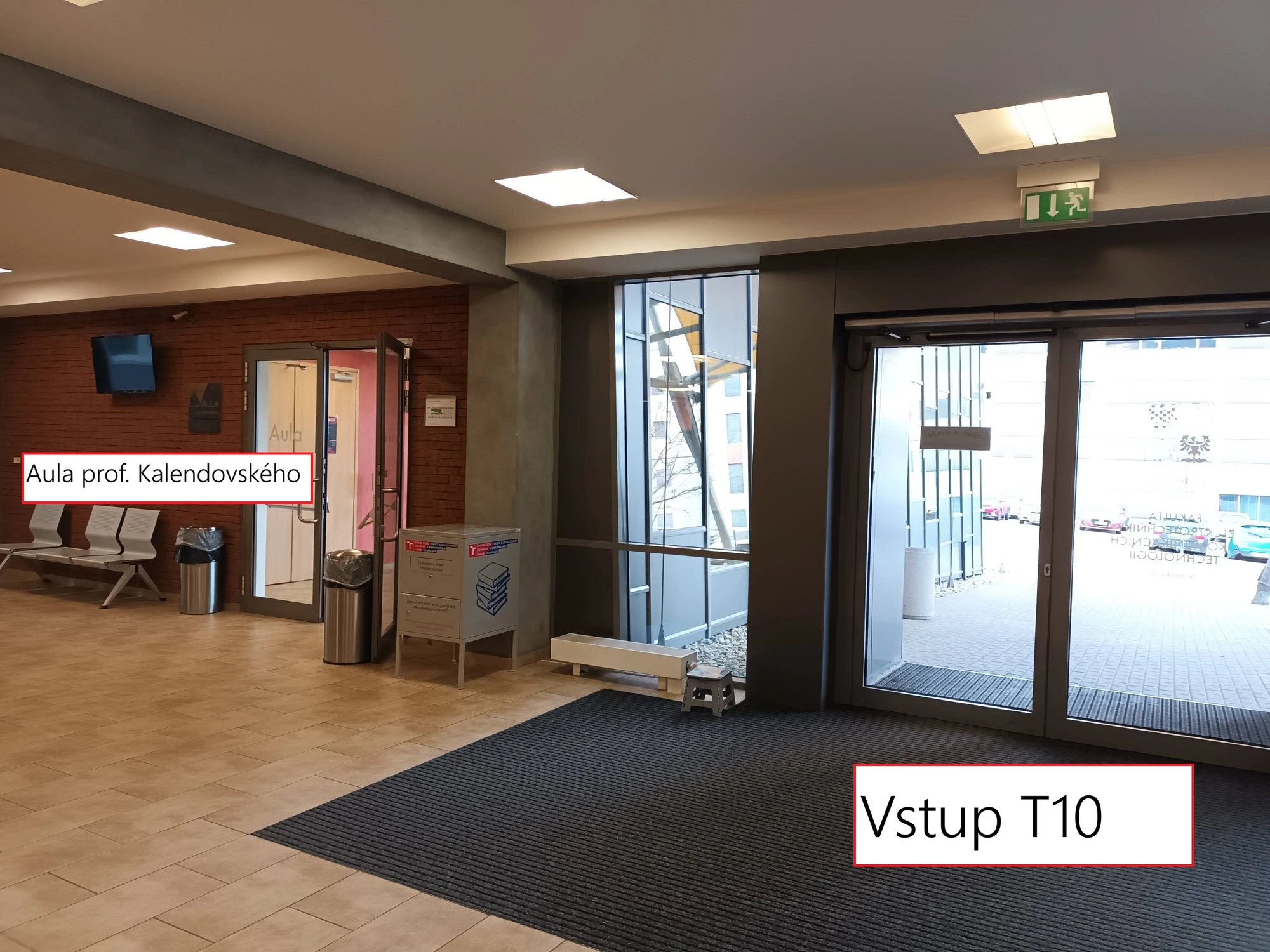 Budova T10 uvnitř (vstup do Auly prof. Kalendovského)