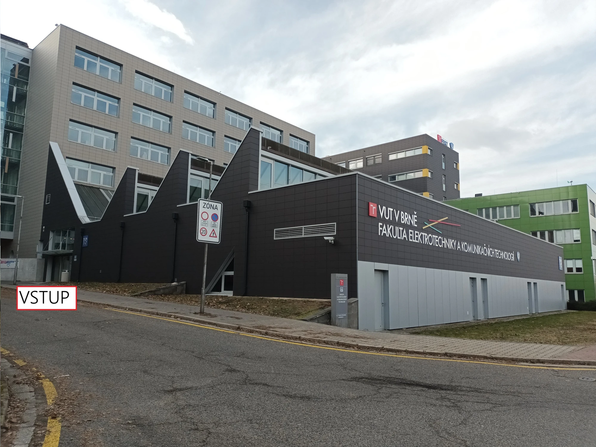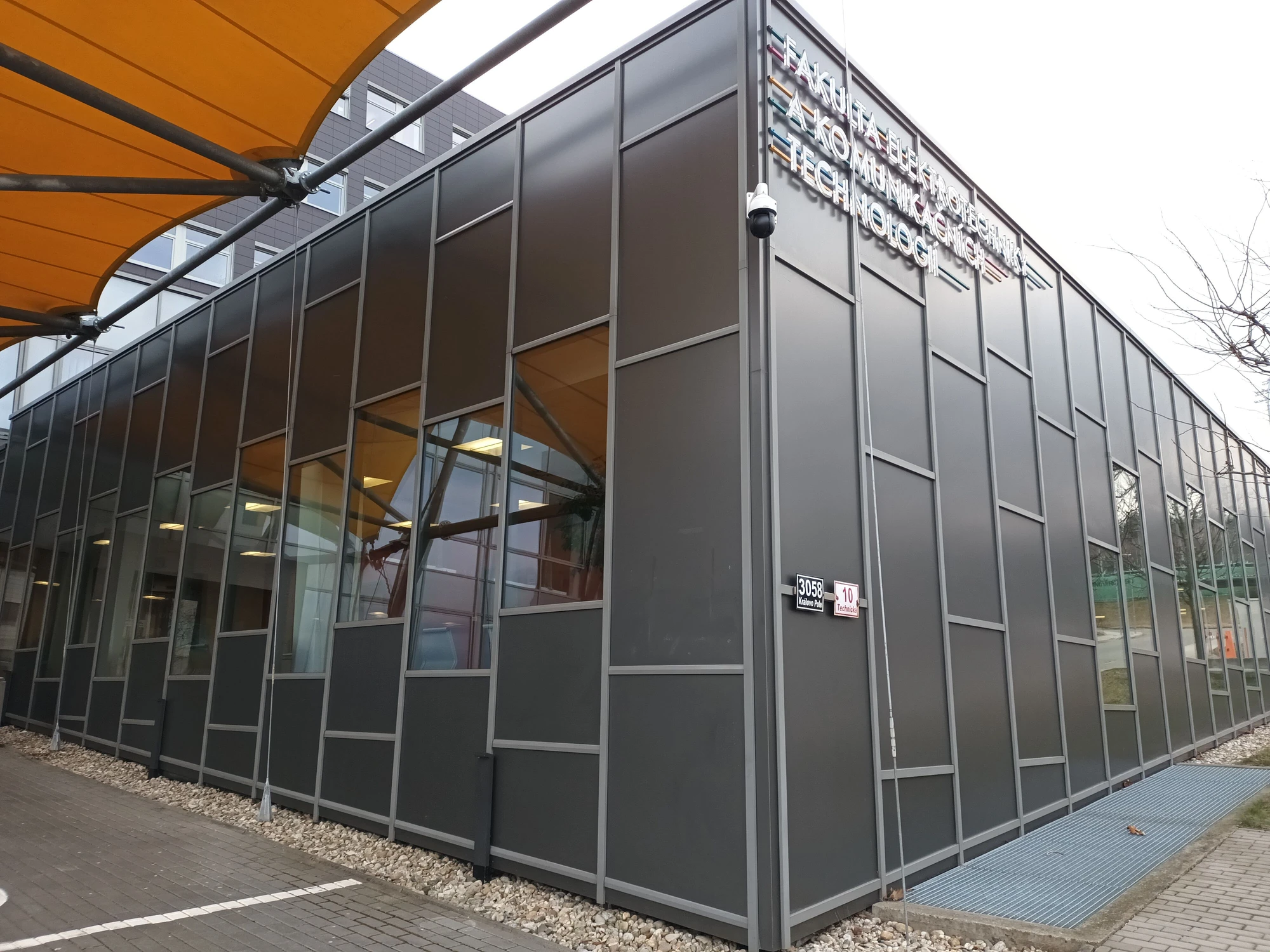 Vstup do budovy T10 (tady najdete Aulu prof. Kalendovského)