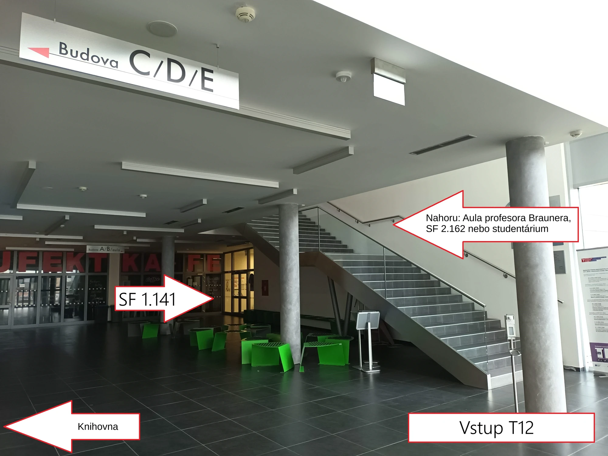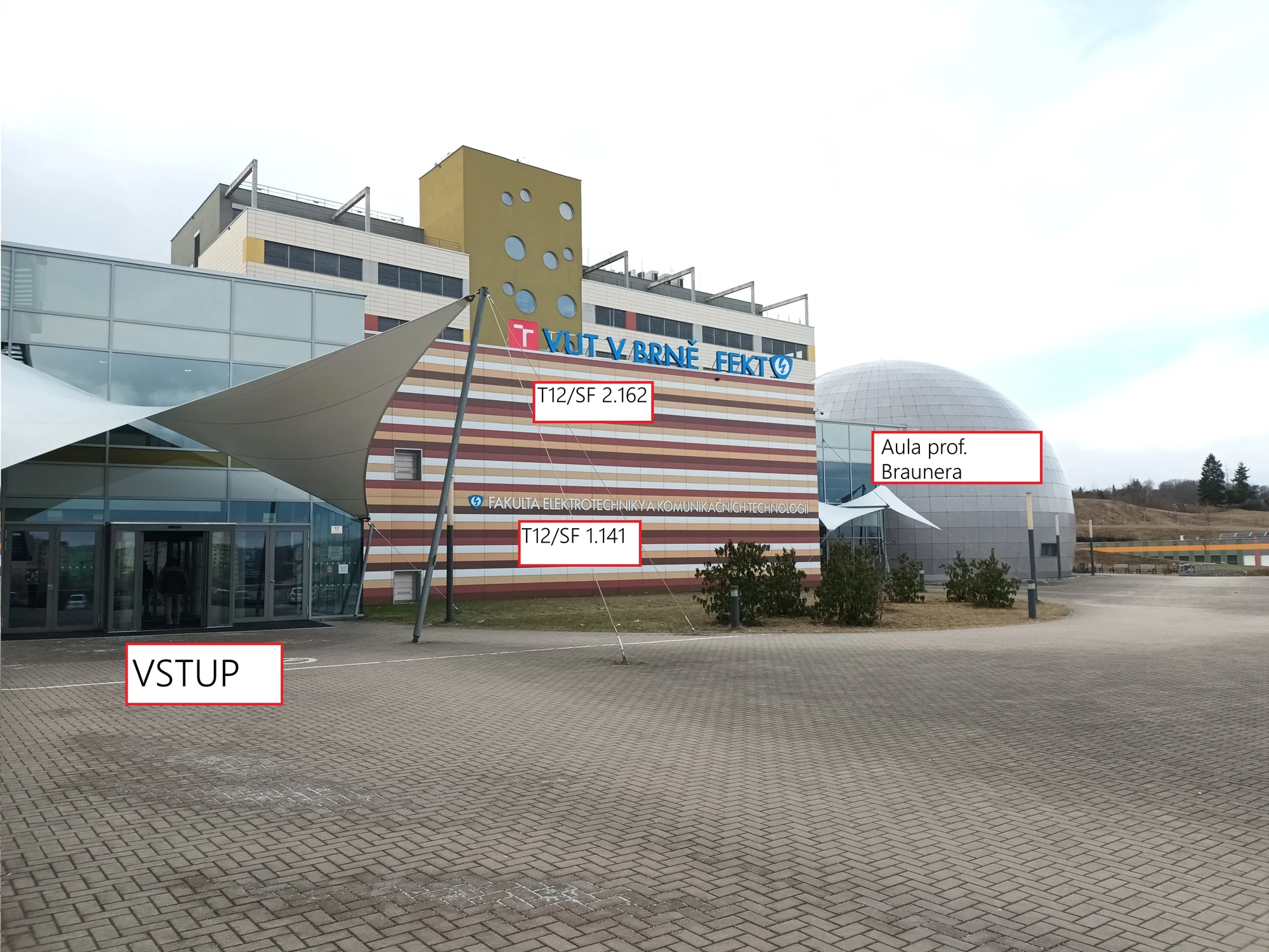 V tomto případě jde o místnost 162 v druhém patře budovy F, která je součást budovy T12.