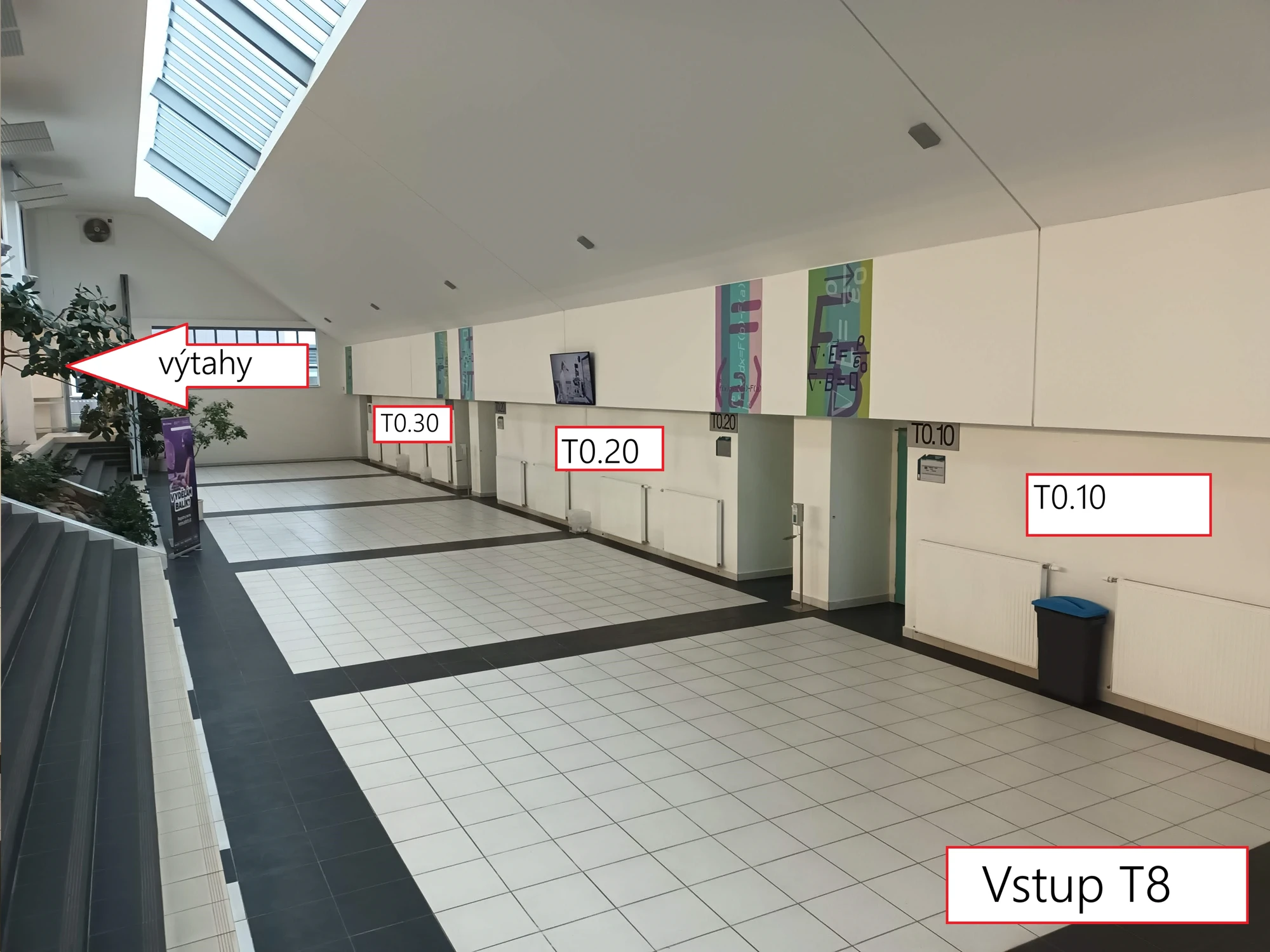 kanceláře vyučujících z UMAT, např. T8/T6.11, což značí